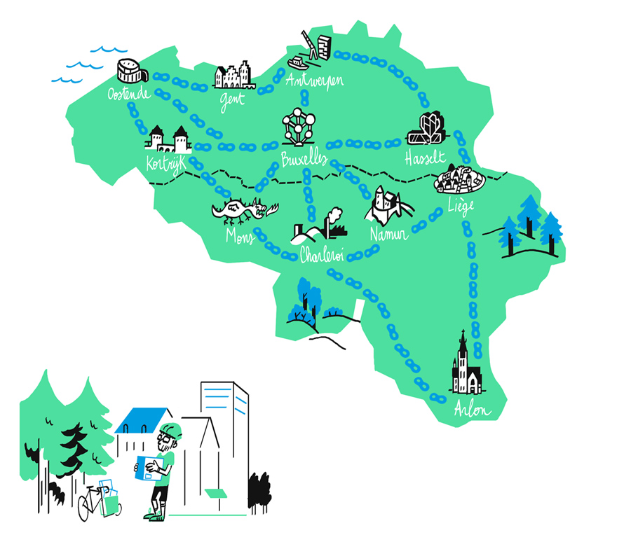 - Alle projecten rond fietslogistiek op te lijsten in de drie gewesten van het land.